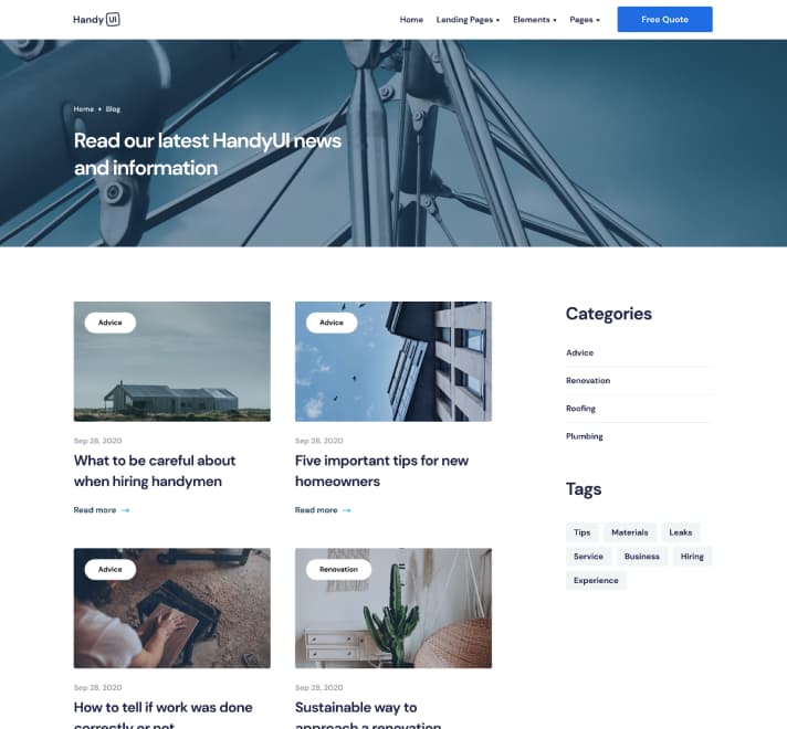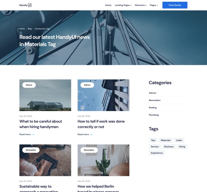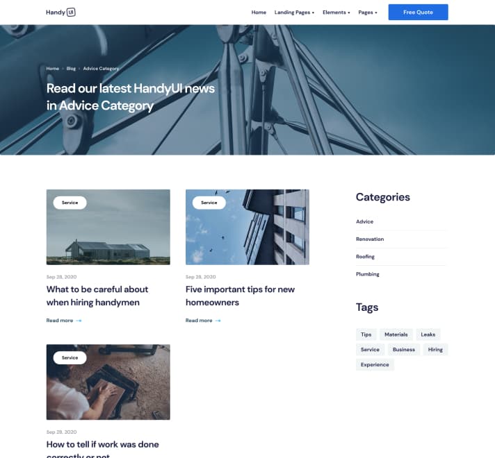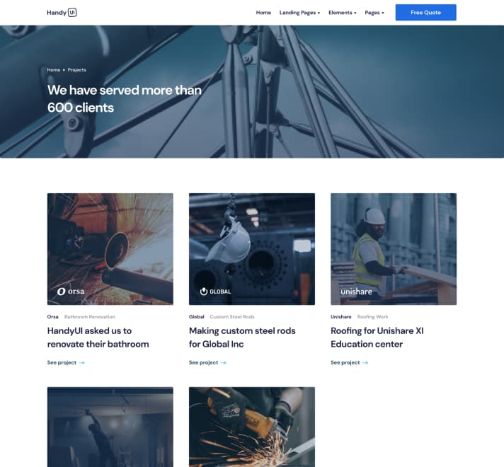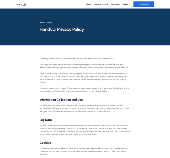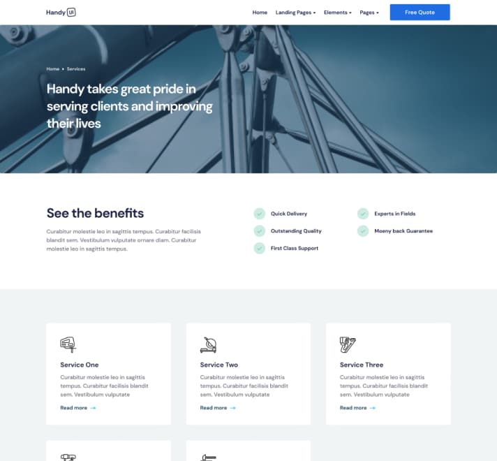 Browse through all the inner pages that HandyUI has included in this UI Kit, and select the right ones for your next small business website.